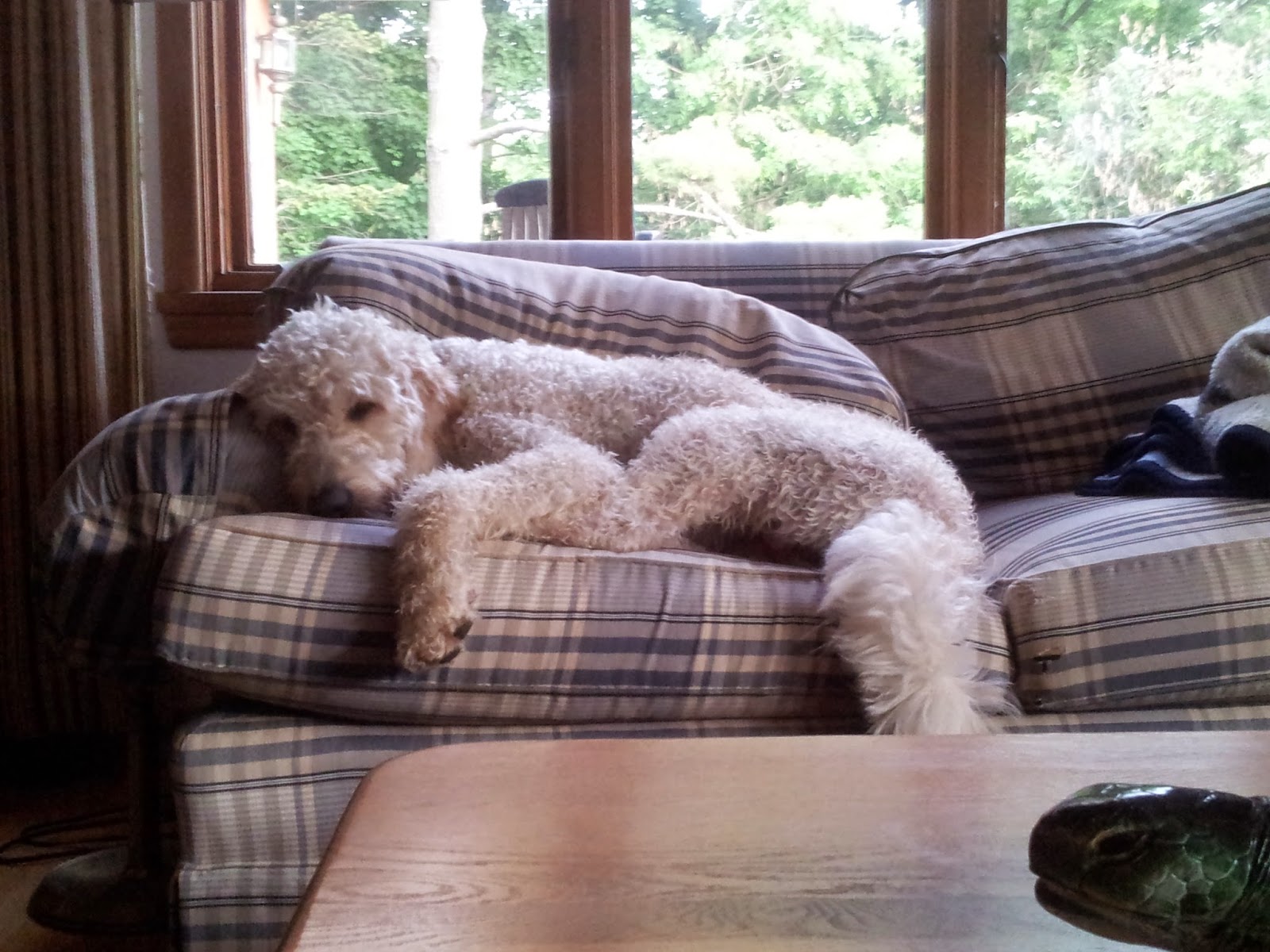 Summer vacationing, especially with a lake and two acres within paws' reach, can be an awful lot of fun, but it does have its drawbacks, namely that it is rather challenging to find "sweet spots" -- those perfect places to nap -- around the house. Milt has really had some difficulty with this adversity, and after almost two weeks here, I think he is finally beginning to sort it all out. One sleeping spot was the below:…