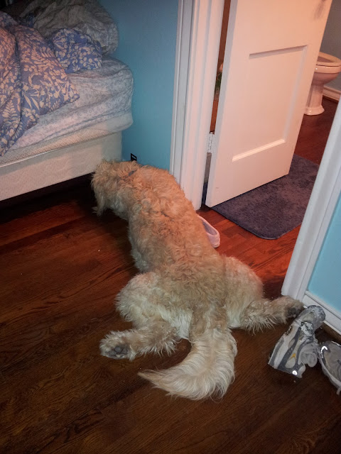 If you do not own any sort of doodle, golden-, Labra-, or Aussie-, you might not be aware of some of their odd, little eccentricities. We certainly did not know until we had Milton home for a few months. Now we are more than aware of all the little unique features that make the Milt, Milt.