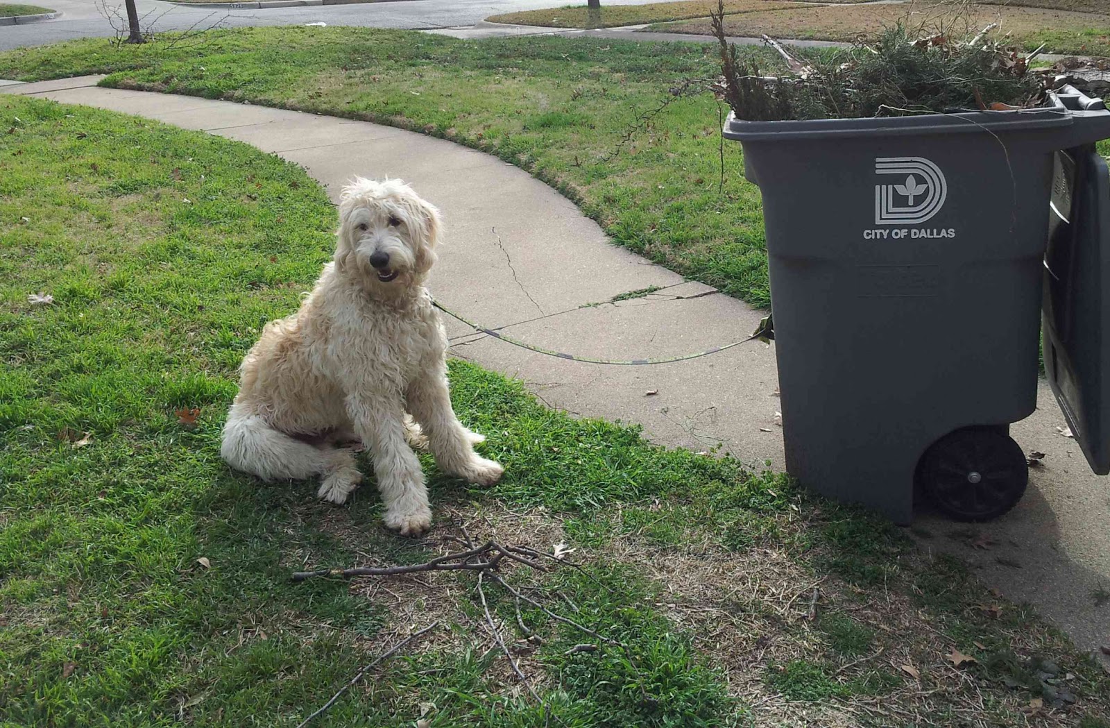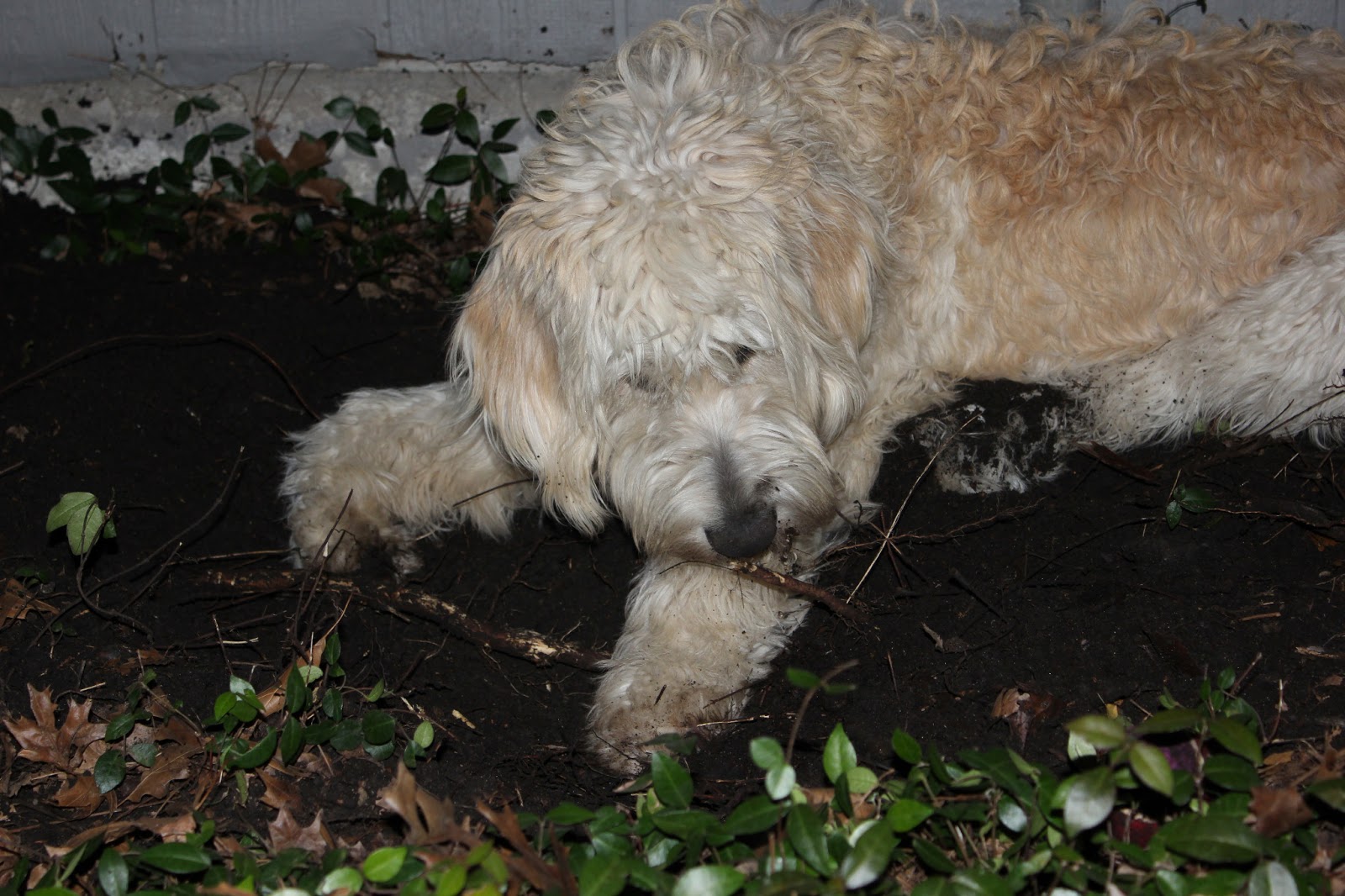 While raking, our dood always joins in the fun! After we raked the leaves out, Milt discovered a lot of cool dark dirt underneath!