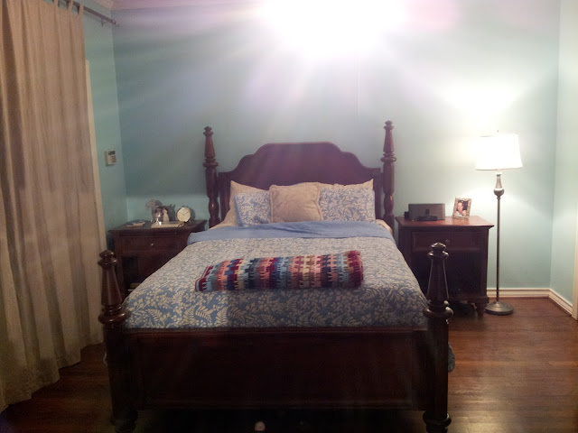 By the way, your bedroom wall color is identical with mine. I love it. And similar dressers as well. But we do have a king size bed. It was a smart choice since we now have two dogs. Too bad that beds don't come in bigger sizes yet...