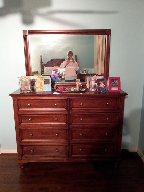 Jeff and I will have been married two years in July. When we joined households, we brought together a hodgepodge of furniture. Jeff owned quite a few "pieces" from his bachelor days, and I was loaded up with garage sale finds and side of the road treasures. So, we combined forces, junking some items and keeping others. Overall, I have been quite satisfied with our eclectic furniture, all except for our bedroom set.