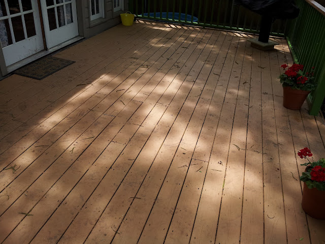 We have shedding birch trees. We grew up with paper birch in the mid-west. We planted some other kind of birches in CA and they are the dirtiest trees around. sigh. They do shade the house in the summer and keep it cool. Have to love that. Plus the leaves and bark are beautiful. It's all a trade-off. Good luck with sweeping twice a day. That could get old fast! Milton looks cute clean or messy.