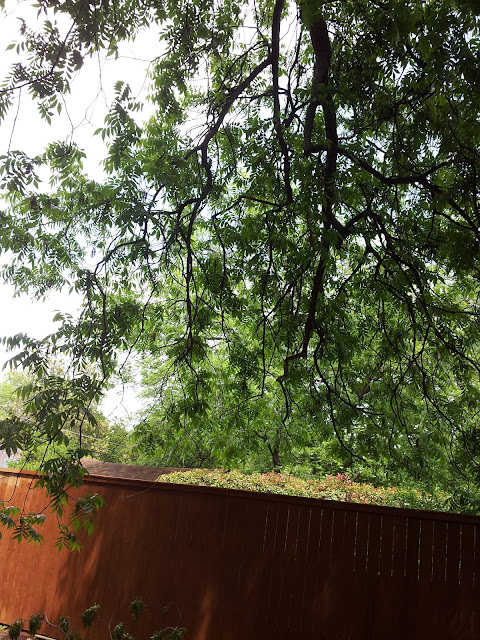 This pecan tree is massive, and it gracefully drapes not only over our yard but both of our neighbors' yards as well.