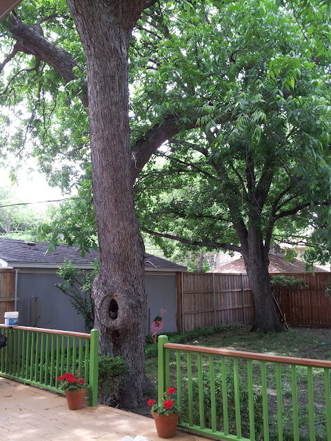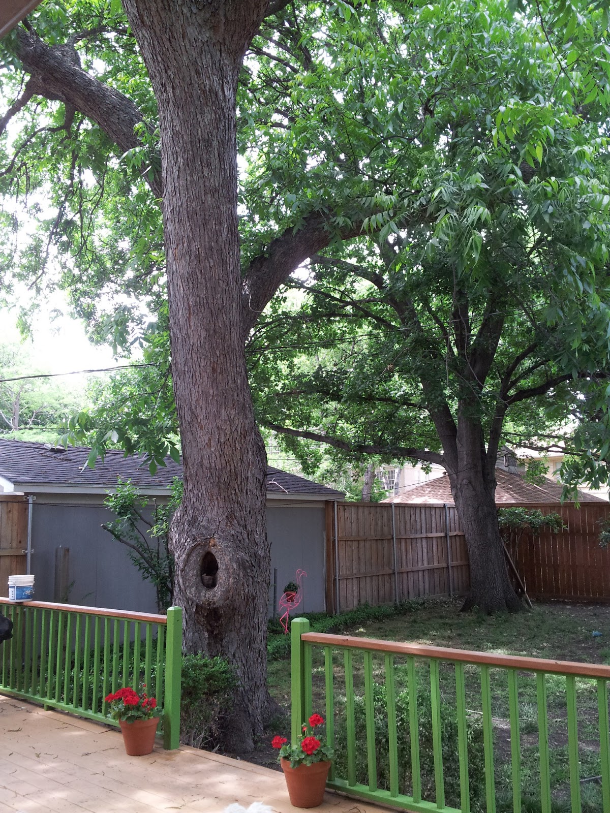 Our backyard is both a blessing and a cursed. We are blessed to have a 100+ year old pecan tree lovingly looking down on our house.