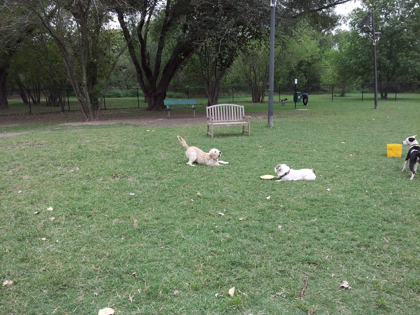 Milton would appreciate the privilege of associating with everyone at the dog park, but sadly the small and large dogs are split up, for good reason, of course. Milton does spend an awful lot of time goofing around! I wish I had more pictures of other dogs playing with him, but I felt a bit awkward snapping up close pics with my big honking camera with all the other dog owners co-mingling in such close proximity.