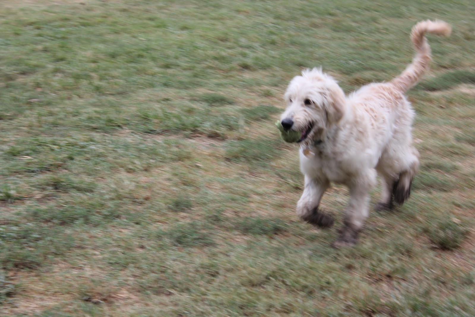 Milton is beginning to like chasing after a tennis ball more and more. Jeff contributes to that by only allowing Milton to play with his tennis balls during "fetch and catch" practice.