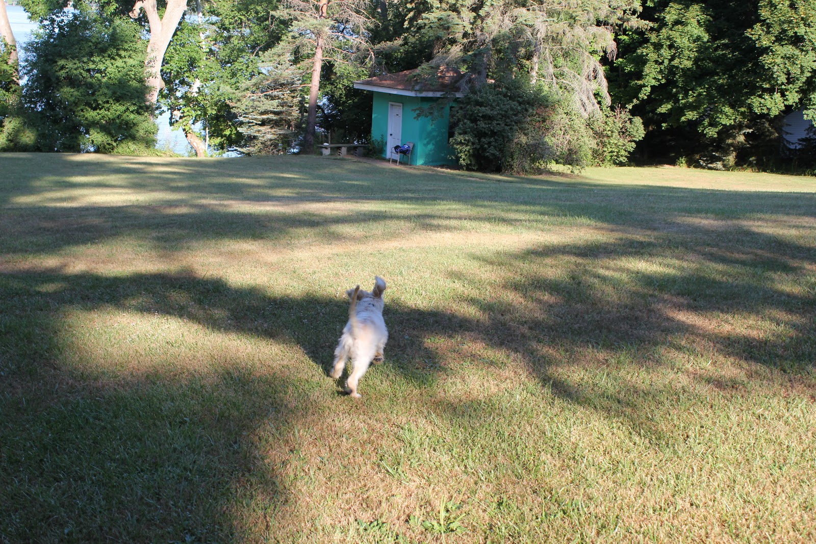 For the past week in New York, Milton has been afforded the luxury of two acres to explore. It is refreshing to watch him tear around the grass, sniff the flowers, and wander down to the lake.