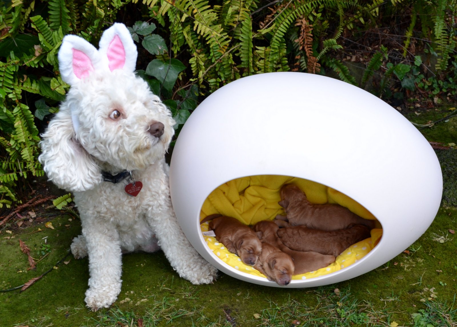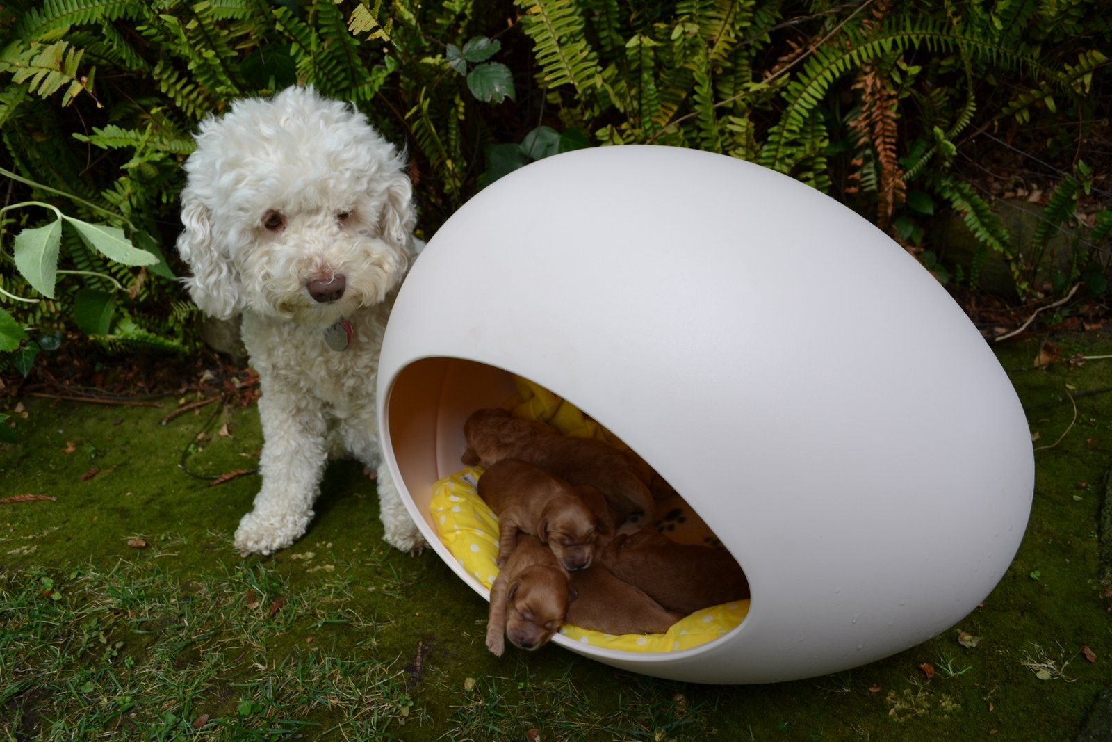 Oh my gosh! These pictures are adorable! The white doggy in the picture isn't the mommy, is it?