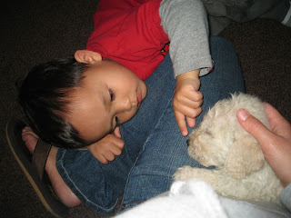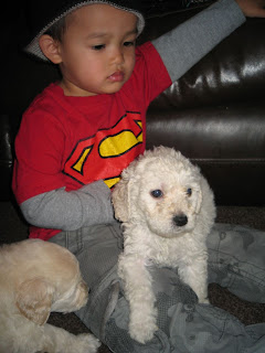 We visited Toka today and we just got back about an hour ago. I had to share the pictures we took because he is getting cuter by the week! Our friend Tim came with us and he fell in love with the Goldendoodles—I wouldn't be surprised if he adopts one in the next few months. Kai absolutely loved the puppies! After a few minutes of being reserved he opened up and couldn't get enough of them. He's been talking about his Toka since we left. Three more weeks and he'll be in our arms! We miss him already.