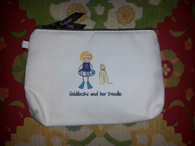 Well, at this party, I shared in brunch, played games, and learned all about these bags. When the time came to fully commit and order, I was still uncertain whether or not I was really in need of a new tote. Then I happened upon a cute little cosmetic bag that could be embroidered as well. Although I already have a vacation pouch, I figured that Milton could use a little overnight case to go in his travel backpack. I was actually quite pleased with how my little design turned out.