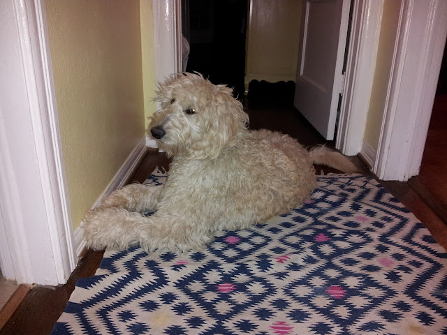 On another note, here is Milton lying on our brand new rug. Jeff actually pulled this rug, all grimy and gross, out of the attic, and I cleaned it up. It was quite the find!