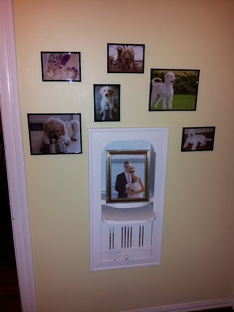 Your wall of pictures is beautiful and I think the star of the show should be very proud! Wow, the telephone stand is awsome and definitely adds charm to the home. The rug very cool and definitely adds some color to the hallway. Great picture of Milt, he is so handsome and really getting big: Is he a standard?