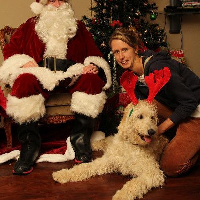 Our goldendoodle might not realize this, but Santa Claus has already begun watching for Christmas 2013. Milt needs to stay on his best behavior all year long and not just ramp it up after Thanksgiving. Likewise, if you can tell from this photograph, Santa and Milton are not the bestest of buddies. After I hauled Milton up into Santa's lap, Milt tried to crawl off over Santa's shoulder, subsequently yanking down Santa's beard and glasses, which was traumatizing for all the other young puppies waiting to sit on the big man's lap. That's why his Momma, in her sweatpants, is in the picture holding him and half of Santa's head is cut off.