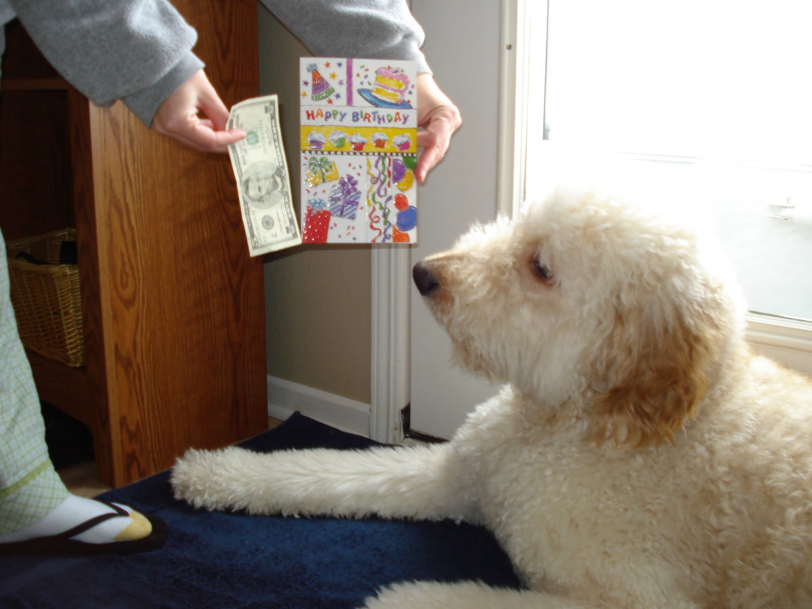 Remington woke up with a phone call from his Grandma Fowler wishing him a Happy Birthday. It was so cute because when my mom said, "Happy Birthday Remington!" his tail started wagging like crazy!