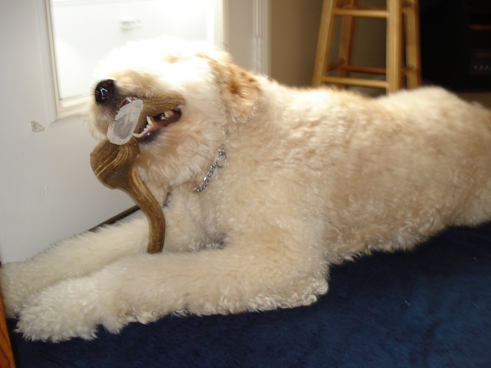 But that wasn't all Remington Bear got!!! Dan and I also had ordered him a gigantic antler! He loves these things and they clean his teeth really well!!!! Had to take this picture so you could see just how BIG it was!