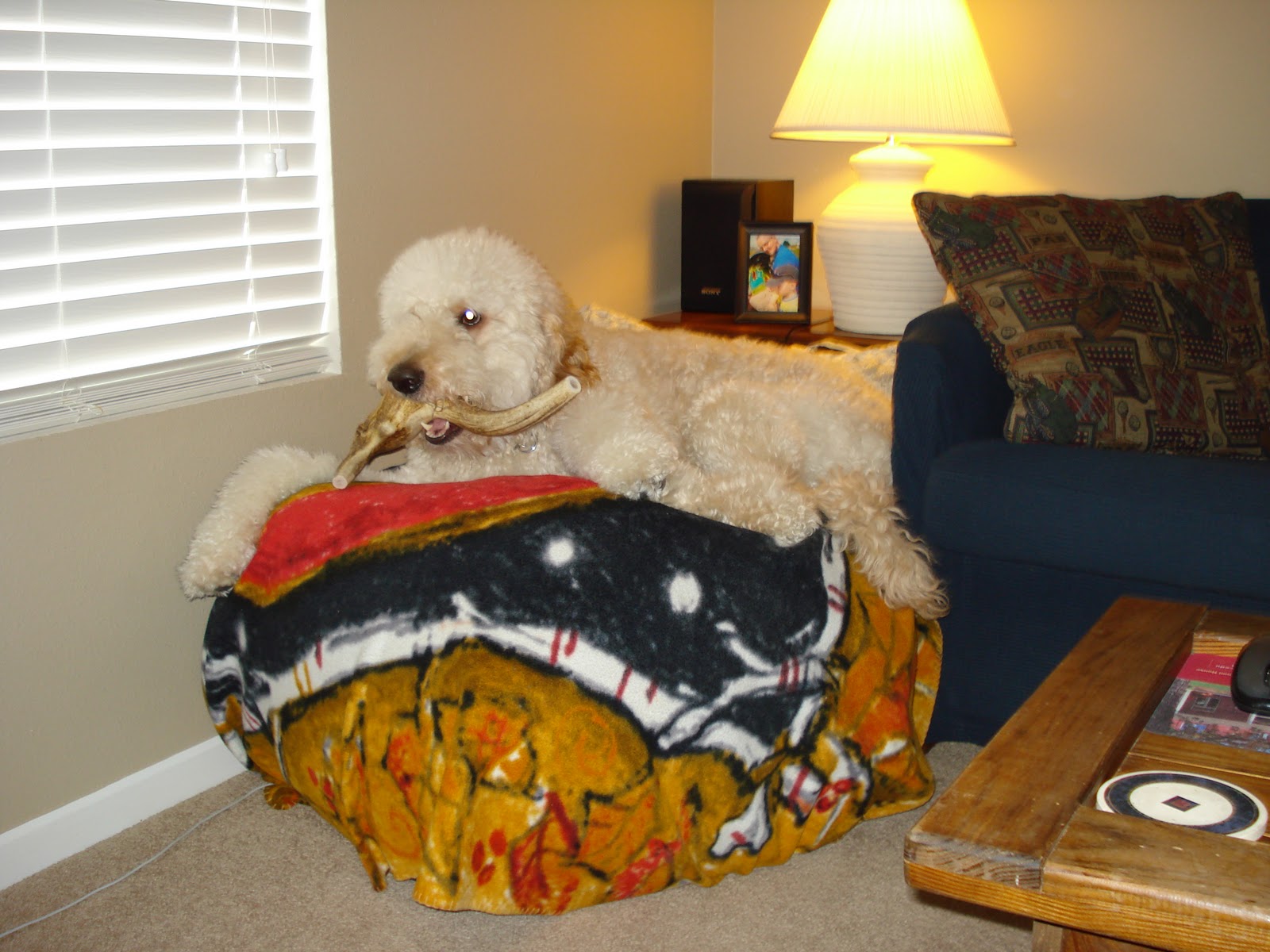 Bear spent the rest of his afternoon lounging on his new bean bag and chewing on his antler!