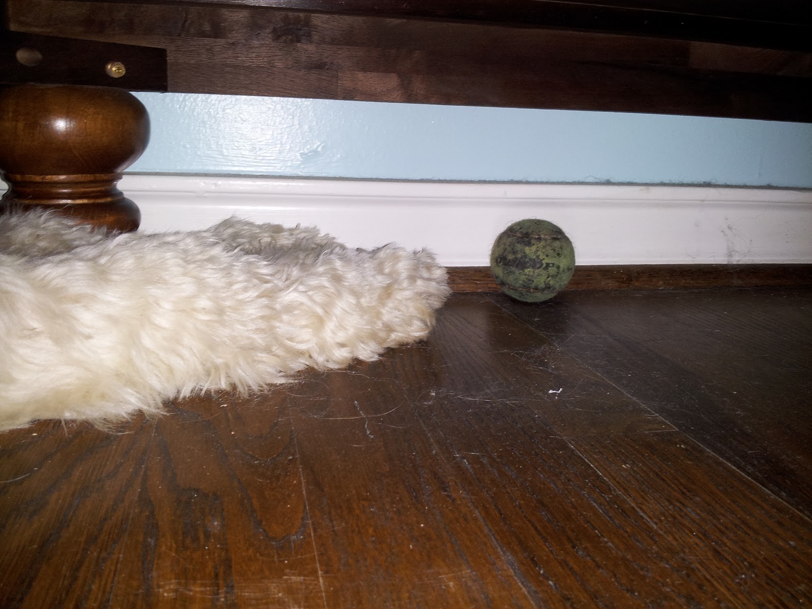 Awww... that look in his eyes... "Mommy, help me? It's the ball again..."