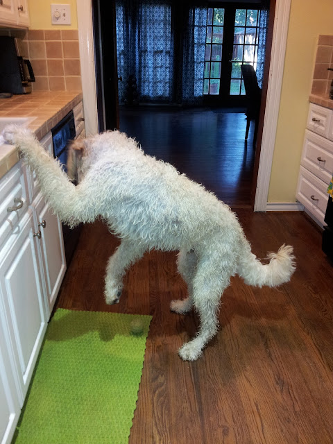 If you know me, you know that I tend to do a little inner monologue for Milton, like I am his "human" voice. It's really not a big deal. Don't laugh; if you are a dog owner, you do it too -- you know you do. Catching Milton in these two above situations makes me wonder if he thinks he might be a human or at least part human.