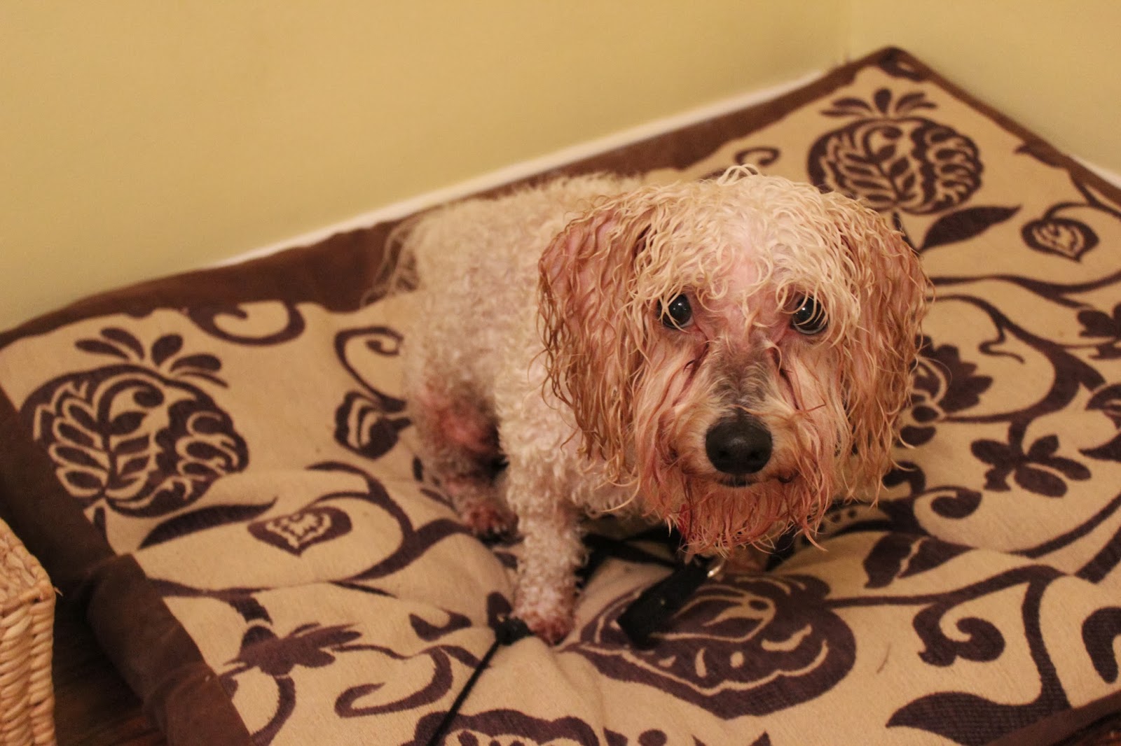 Hilarious! Dusty might be the most pathetic wet dog I have ever seen. Poor Milton being pushed off his bed when he really, really needed it. Life is hard and then the guests leave. ;o)